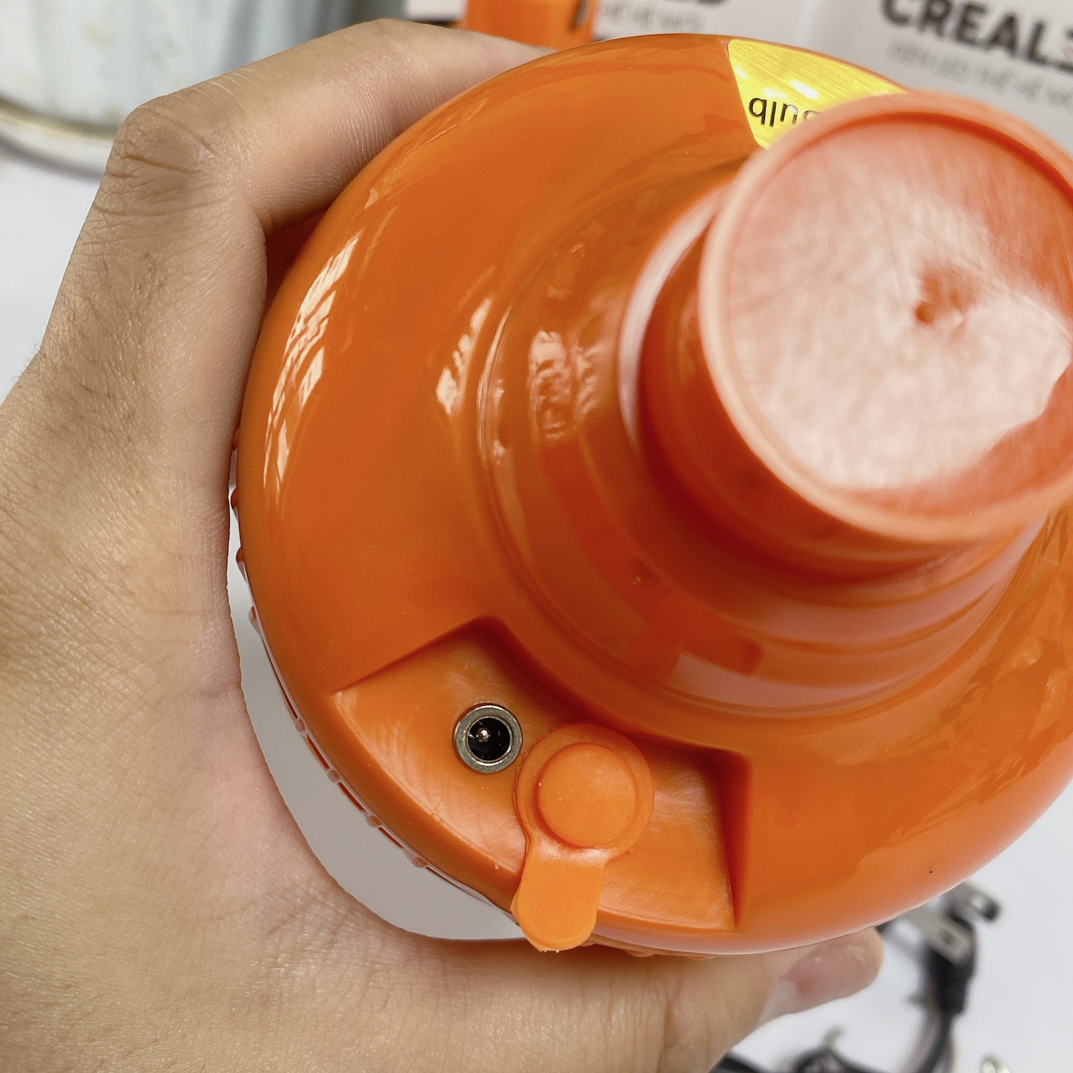 👉Mở nắp và cắm chân sạc khi đầy sẽ thể hiện đèn nổi xanh